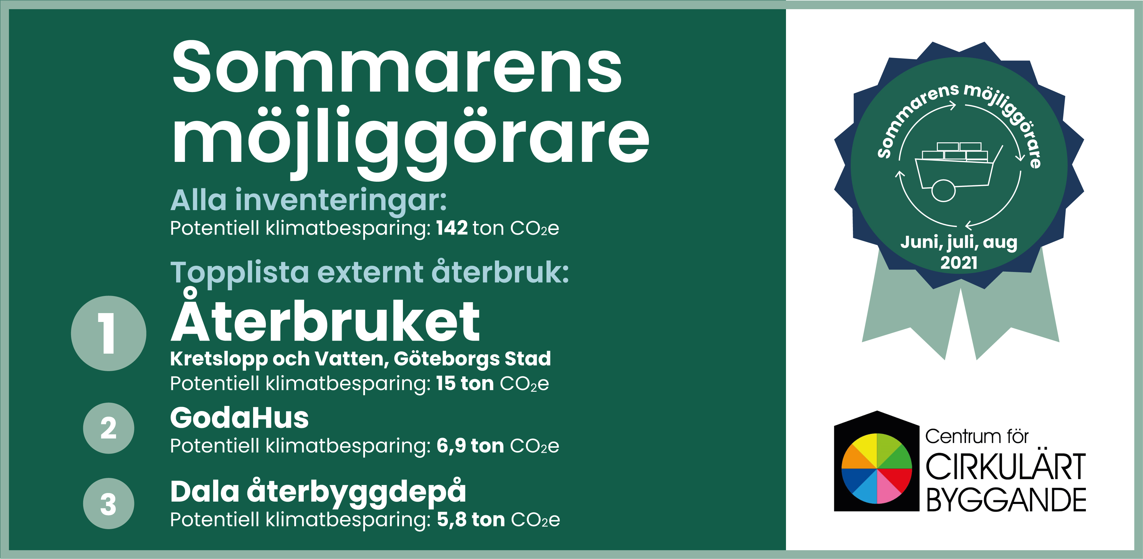 Sommarlistan över dem som publicerat mest på marknadsplatsen toppas av Återbruket (Kretslopp och Vatten, Göteborgs stad), GodaHus och Dala återbyggdepå. Bra jobbat!